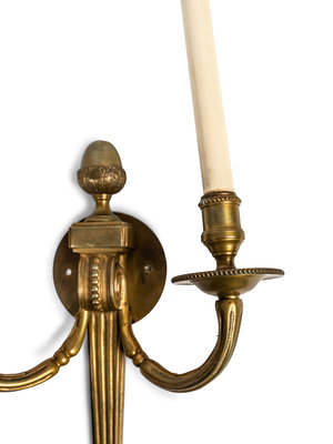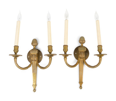 A Pair of Louis XVI Style Gilt Bronze Two-Light Wall Sconces