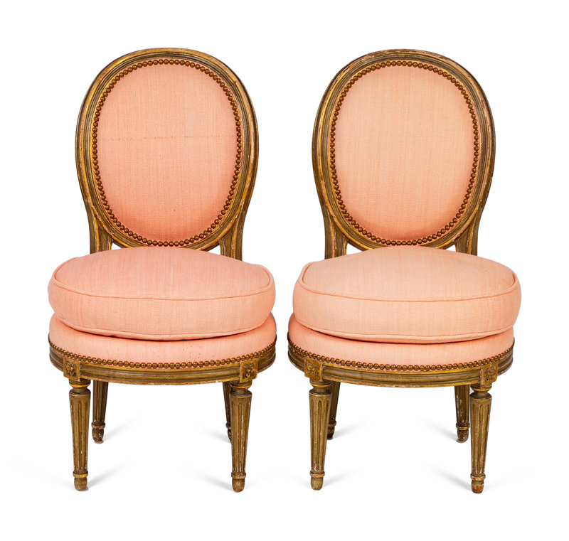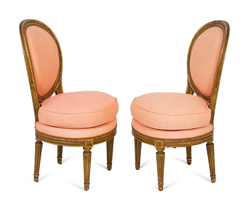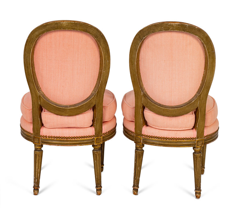 A Pair of Louis XVI Parcel-Gilt Petite Boudoir Chairs