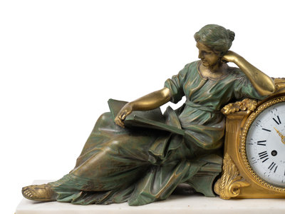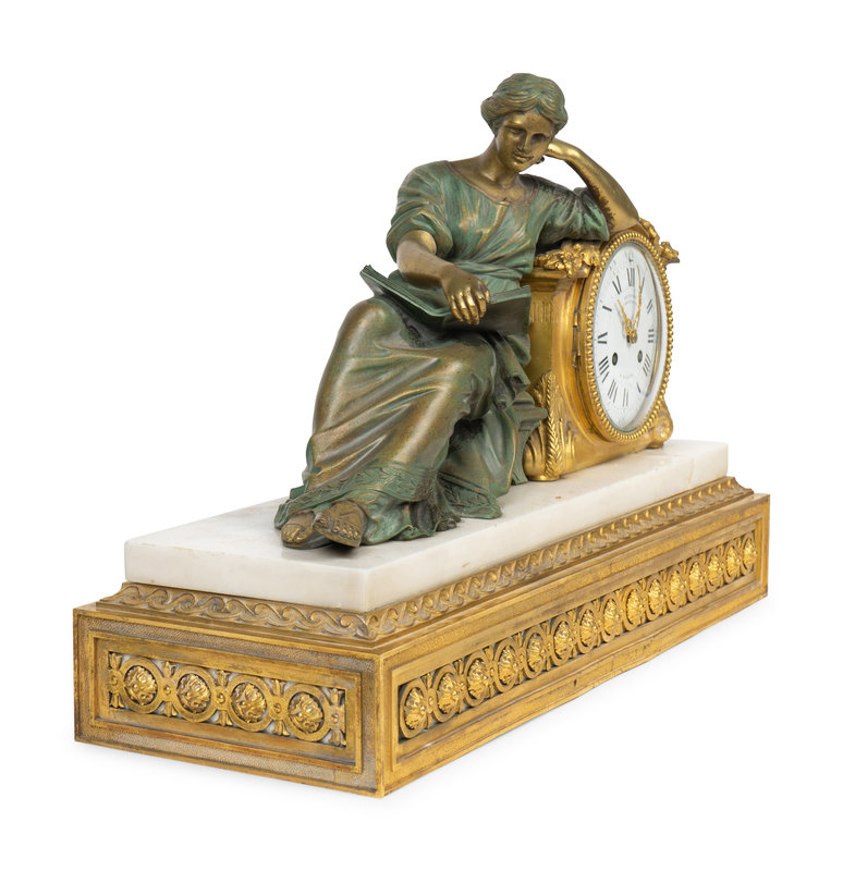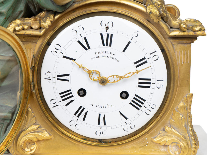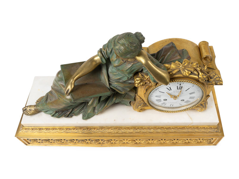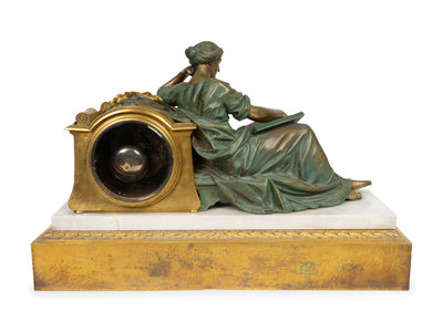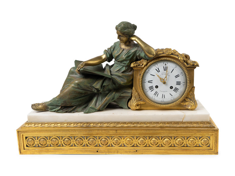 Bronze, Gilt Bronze and Marble Figural Mantle Clock