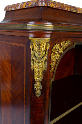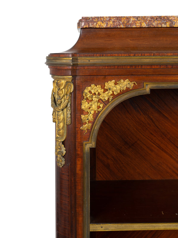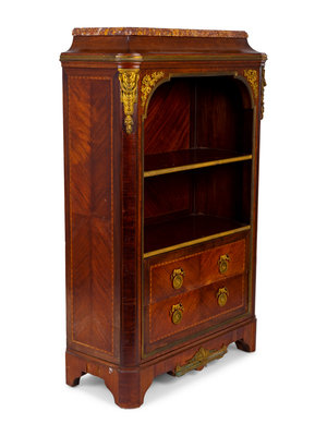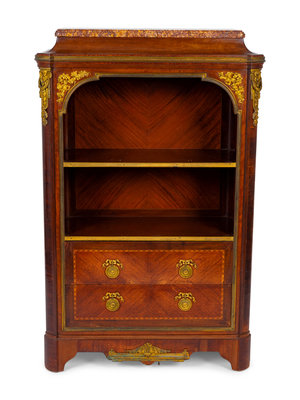A French Empire Style Gilt Bronze Mounted Mahogany Marble Top Bibliotheque