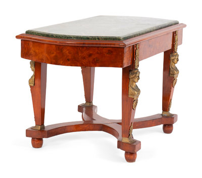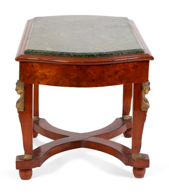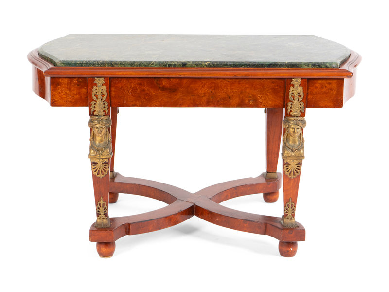A French Empire Style Burlwood and Gilt Bronze Mounted Marble Top Low Table