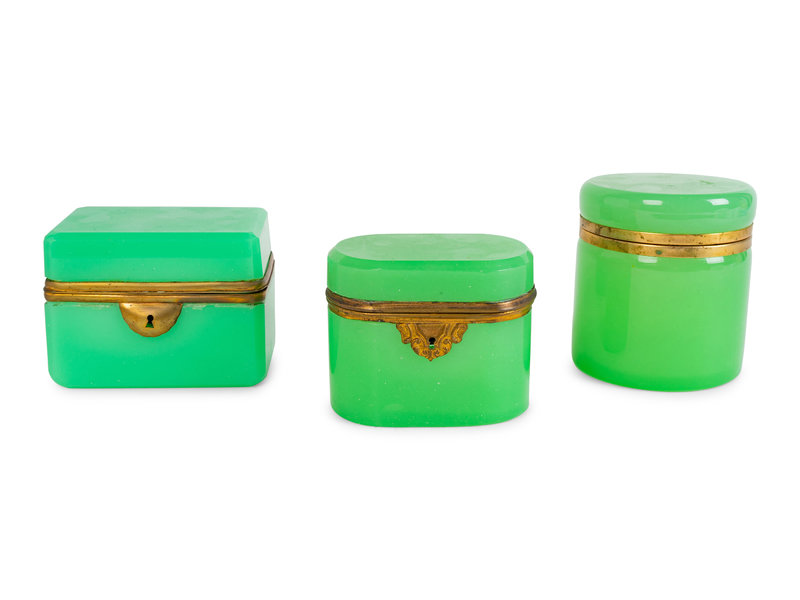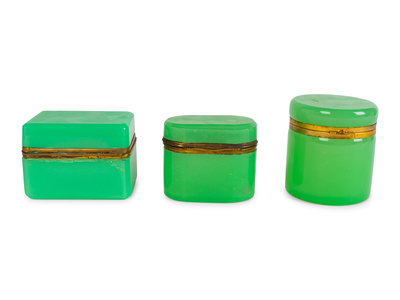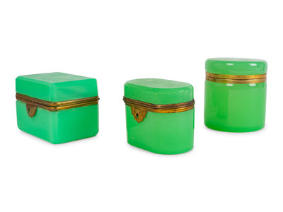 Three French Opaline Glass Covered Boxes