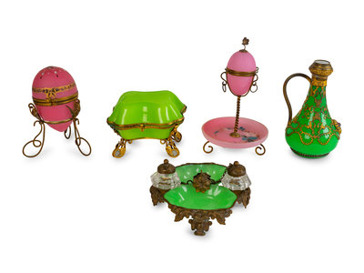 A Group of Five French Opaline Glass and Gilt Metal Mounted Desk Articles