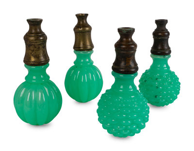 Two Pairs of French Green Opaline Boules Escaleirs