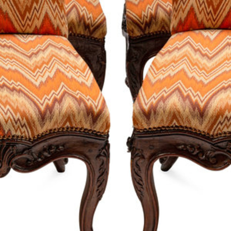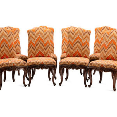 A Set of Eight Continental Carved Walnut Dining Chairs