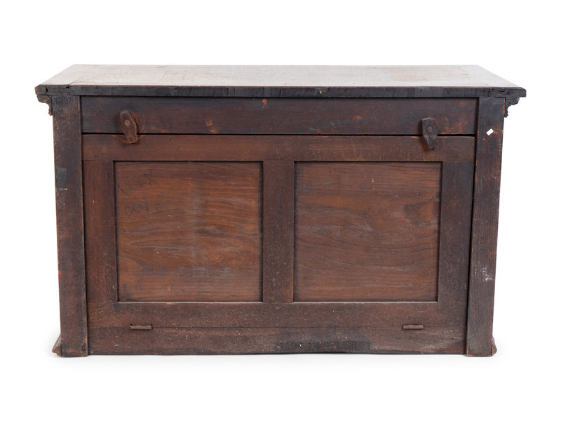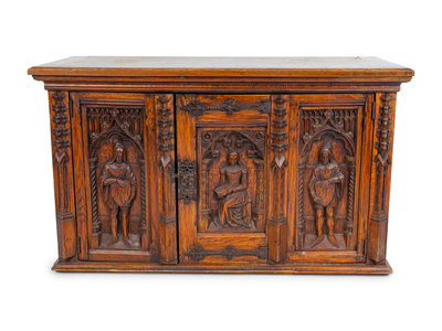 A Renaissance Revival Carved Oak Trunk with Iron Mounts