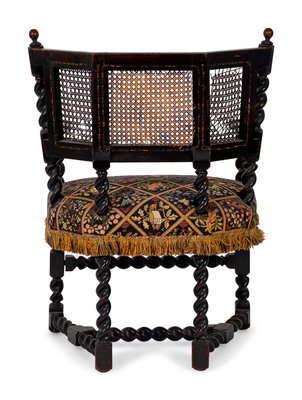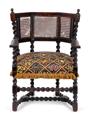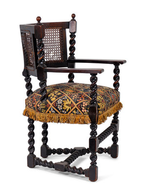 A Jacobean Style Carved Oak Cane Back Armchair