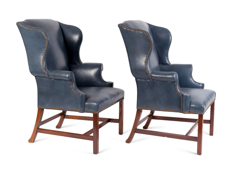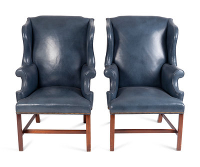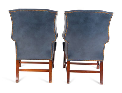 A Pair of George II Style Leather Upholstered Wingback Chairs
