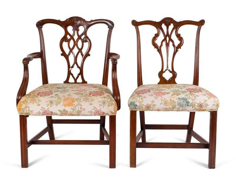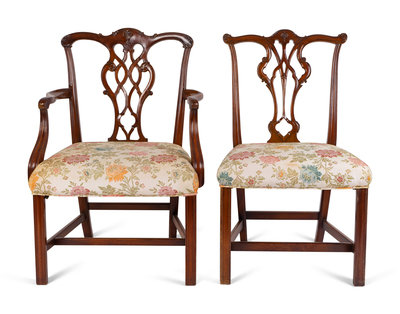 Carvers, height 37 1/2 inches; side chairs, height 37 inches.