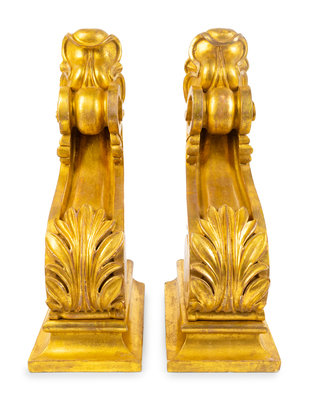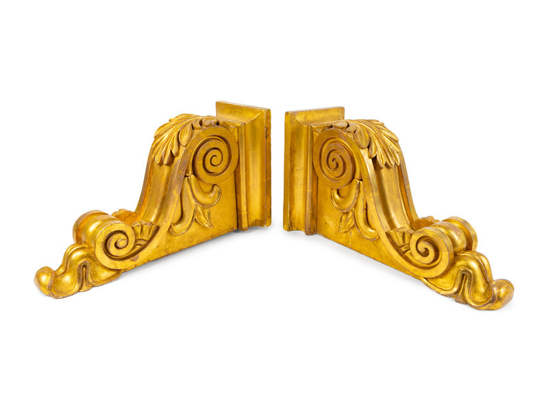A Pair of English Neoclassical Style Carved Giltwood Brackets