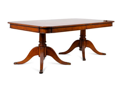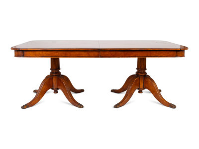 A William IV Two- Pedestal Cross Banded Burl Veneer Dining Table