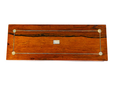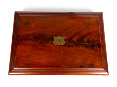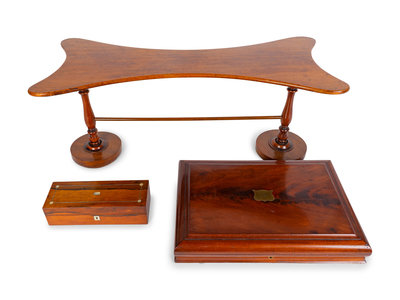 comprising a mahogany two-pedestal shelf, a rosewood box and a figured mahogany box.