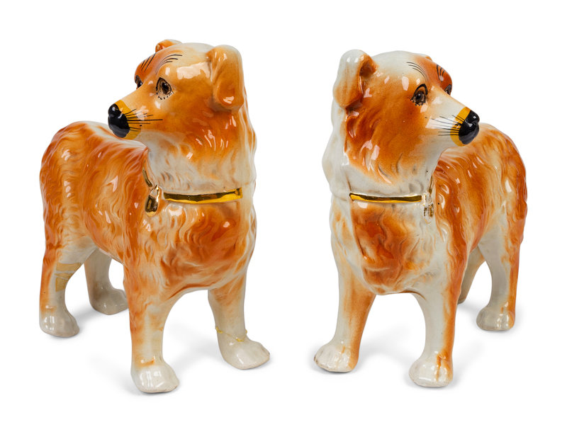 A Pair of Large English Staffordshire Standing Dogs
