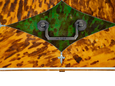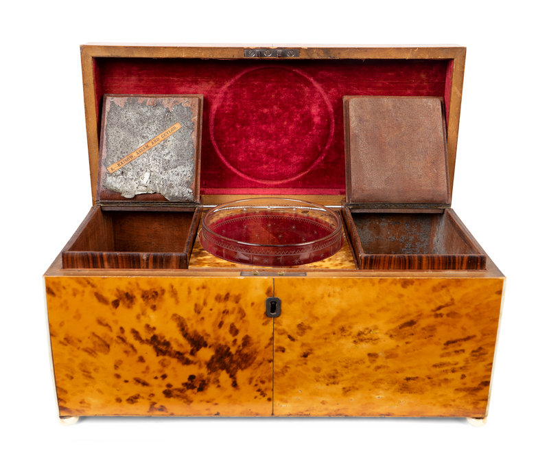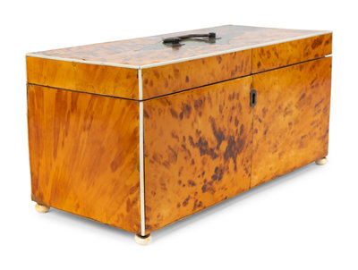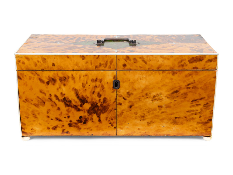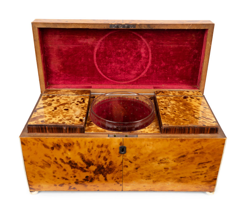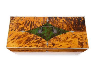 A George III Tortoiseshell and Green-Stained Tortoiseshell Inlay Tea Caddy