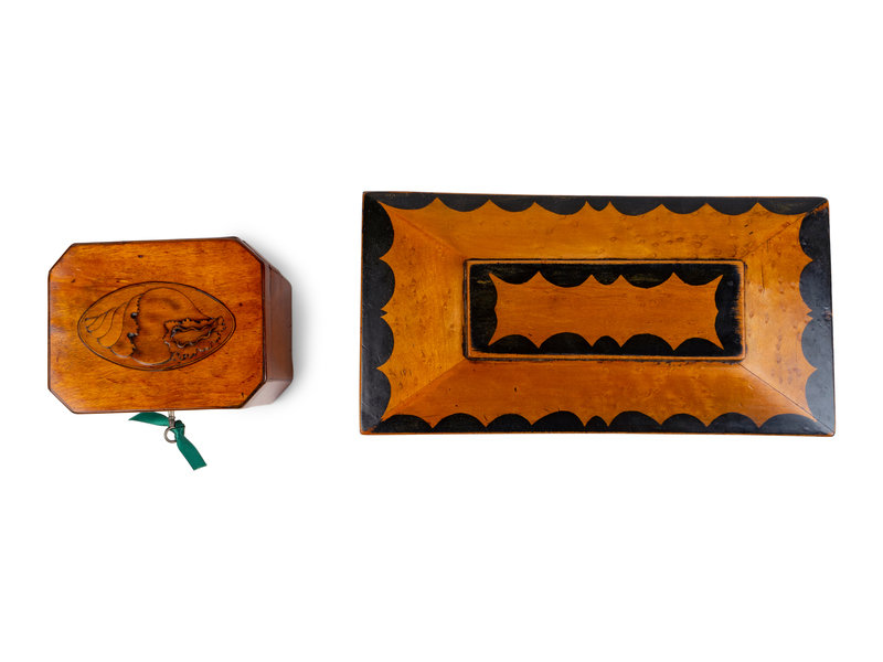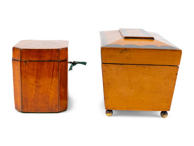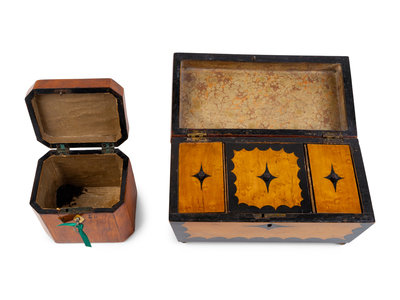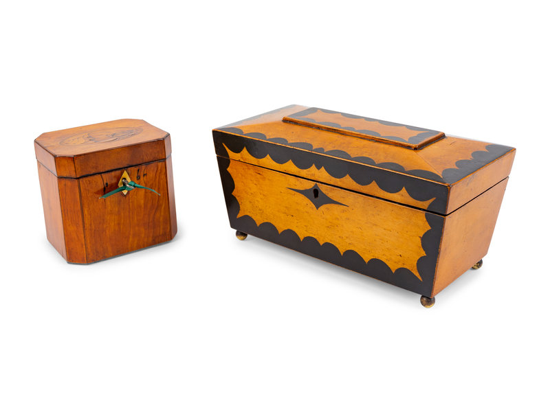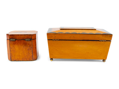 Two English Walnut Marquetry Tea Caddies
