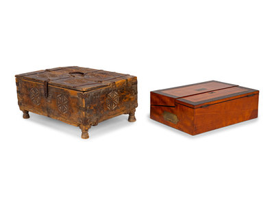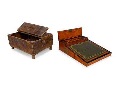 A Spanish Baroque Style Metal Mounted Box and a Regency Brass Mounted Lap Desk