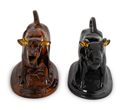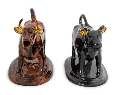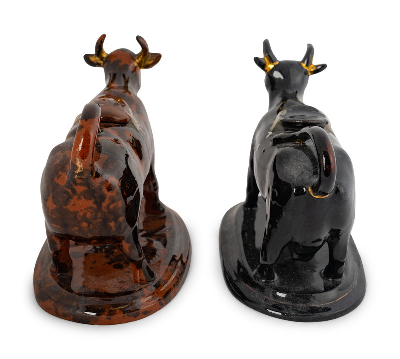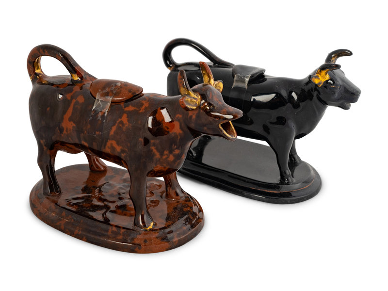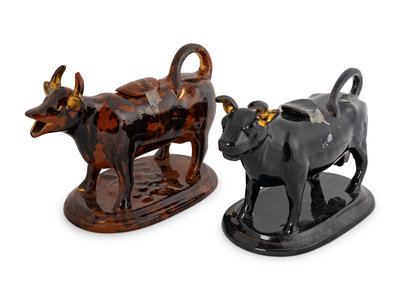 Two Rockingham Glazed Cow-Form Ceramic Creamers