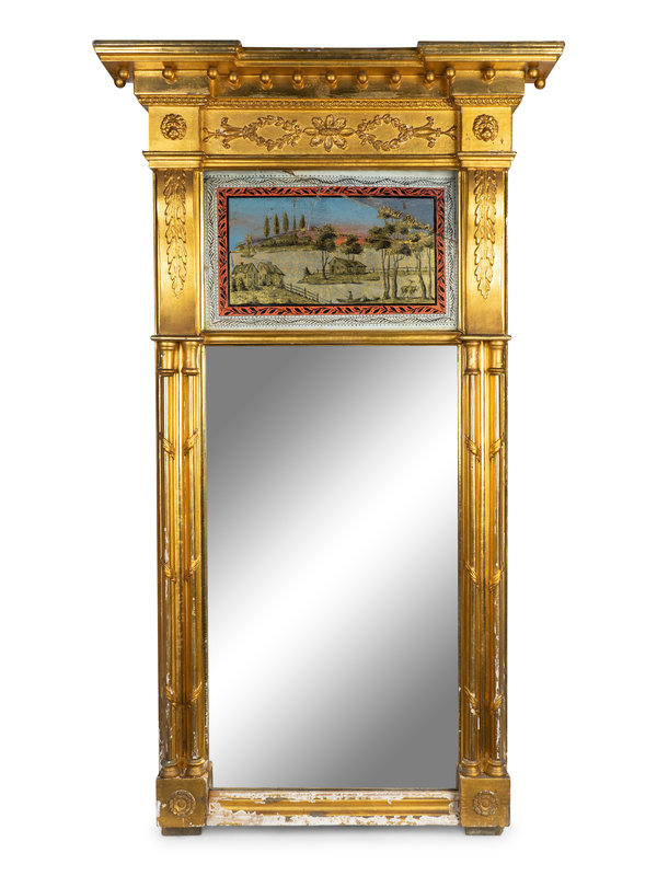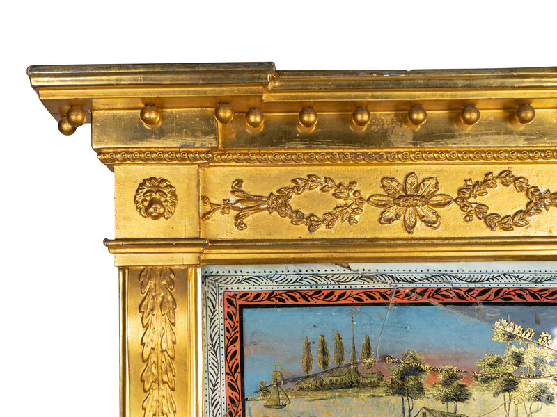 A Federal Gilt Wood Mirror with Eglomise Panel