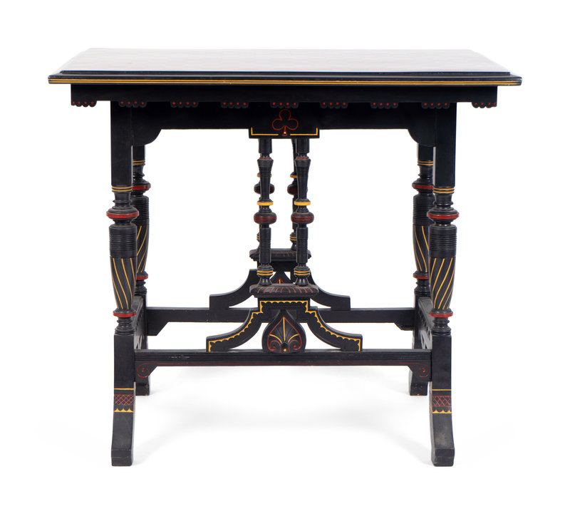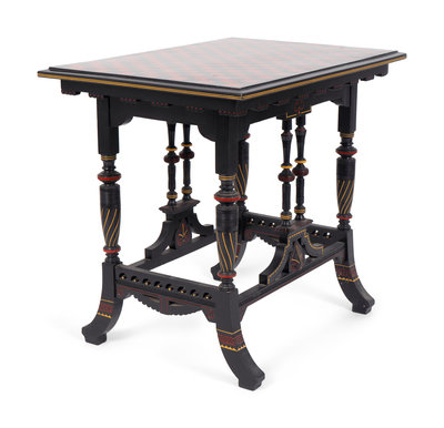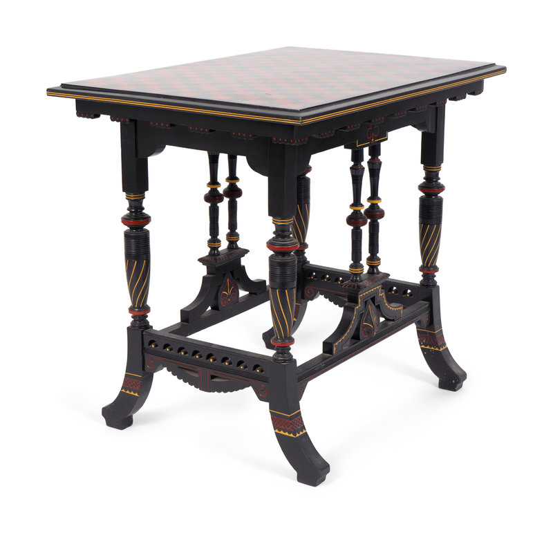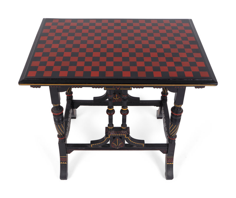 An Eastlake Ebonized Side Table with Red and Black Checkered Top