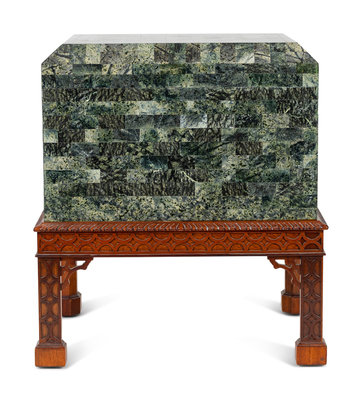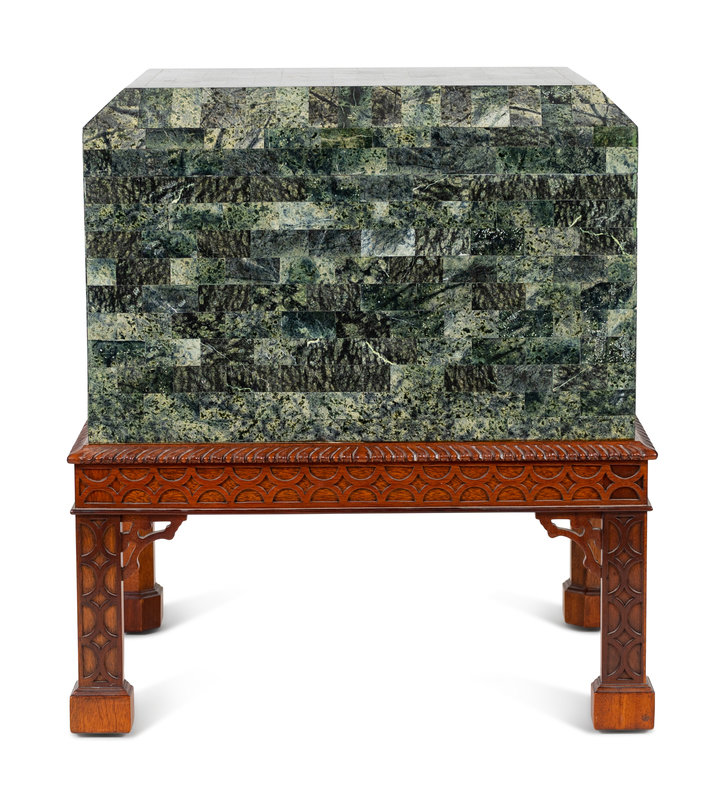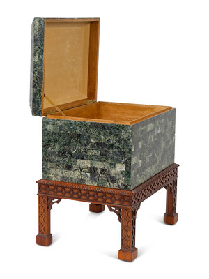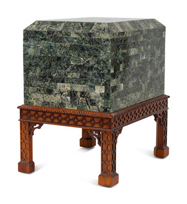 A Tessellated Marble Box on Chippendale Style Stand