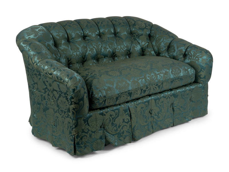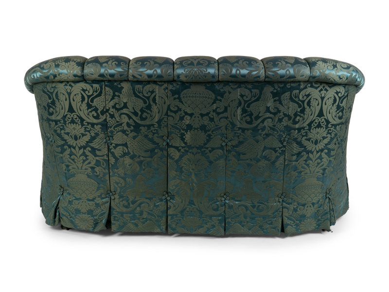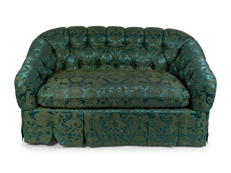 A Green Damask Button Tufted Love Seat