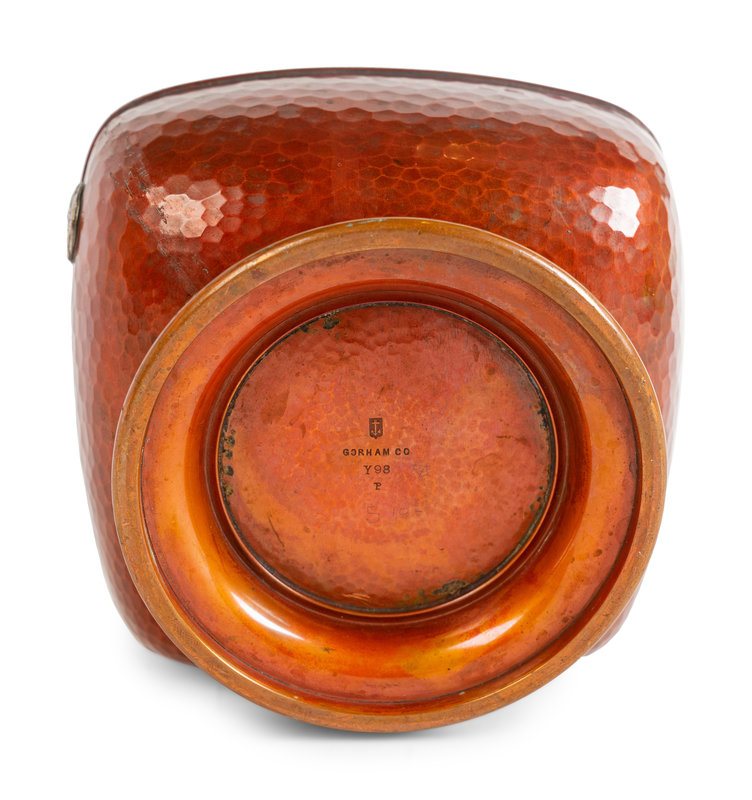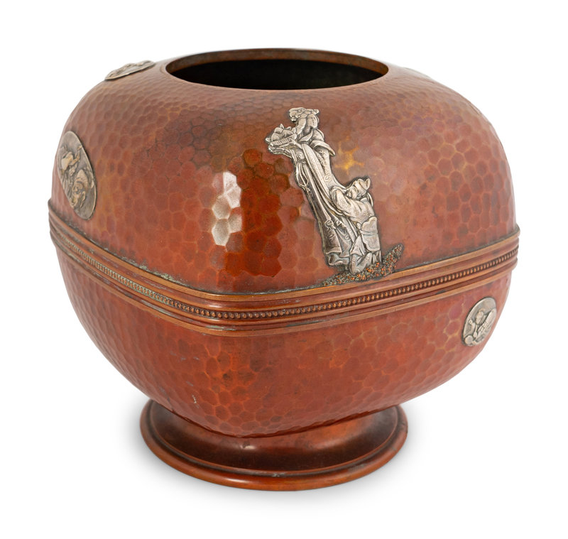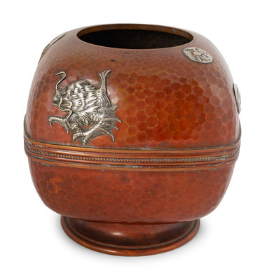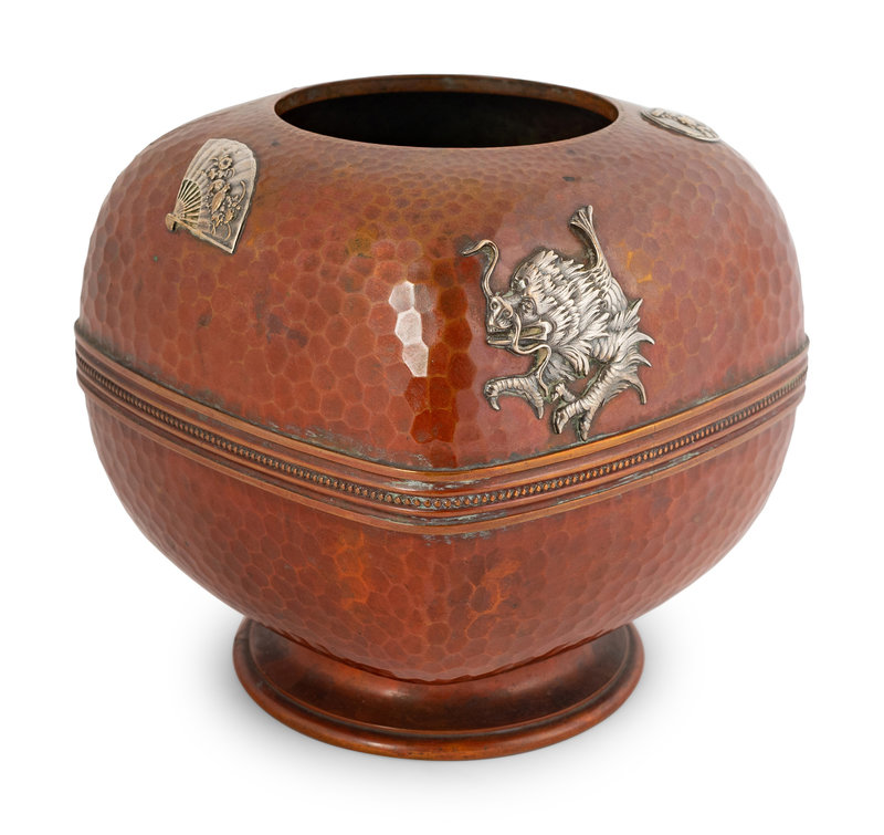 An American Japonesque Hammered Copper Vase with Silver Mounts