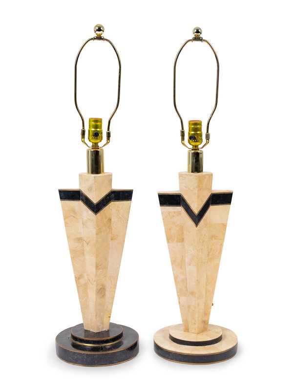 A Near Pair of Art Deco Tesselated Marble Table Lamps