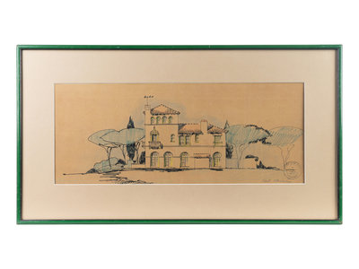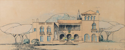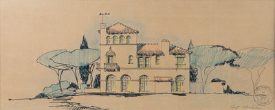 A Set of Three Architectural Sketches by Marion Sims Wyeth Studio of a Palm Beach Home