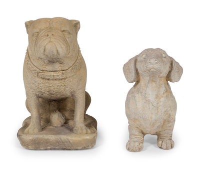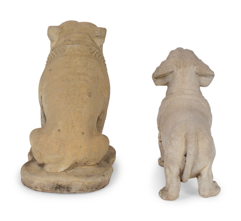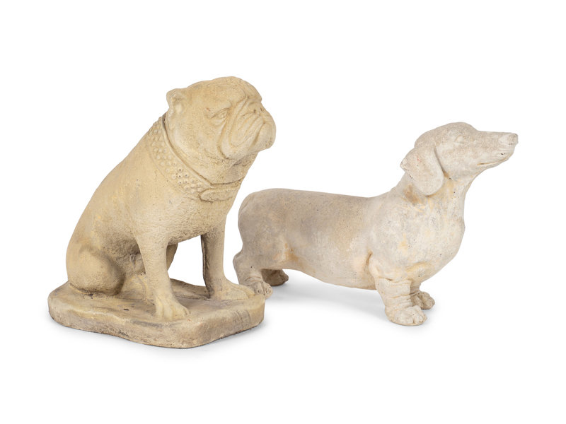 Height of bull dog 17 3/4 inches, dachshund 13 3/4 inches.