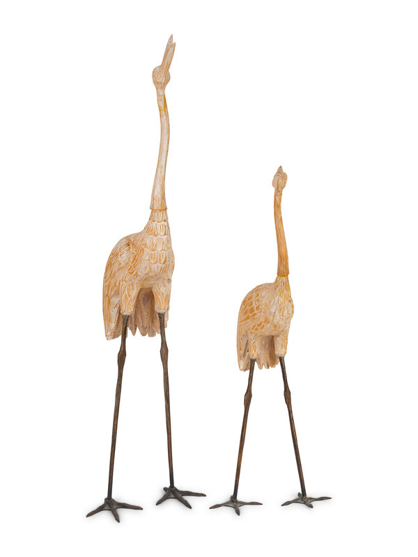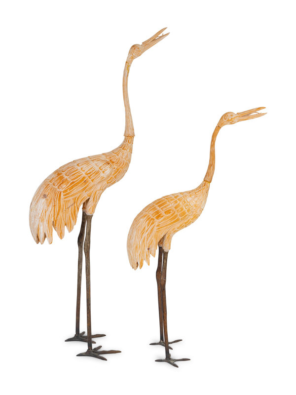 A Pair of Asian Carved Wood Cranes