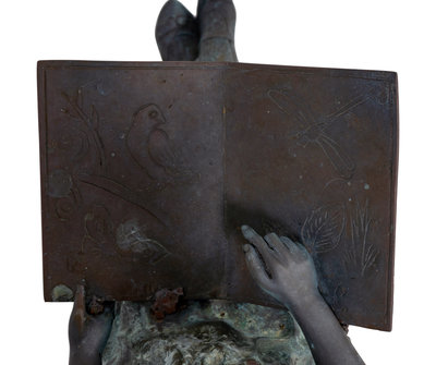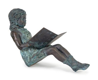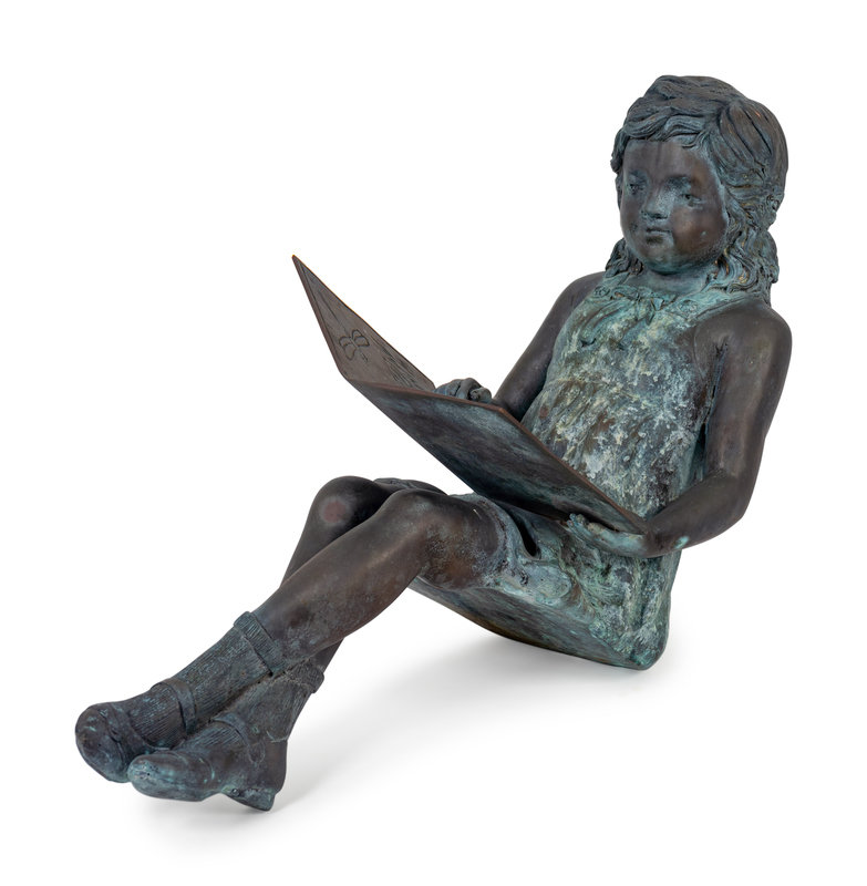 A Bronze Figure of a Young Girl Reading a Book