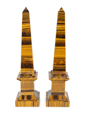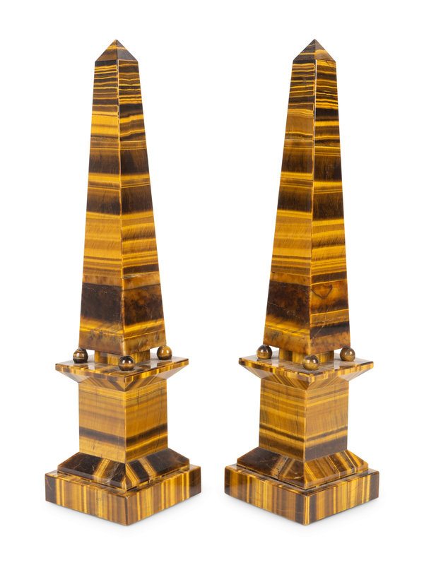 A Pair of Tiger's Eye Agate Veneer Obelisks by Raffaello Romanelli, Florence