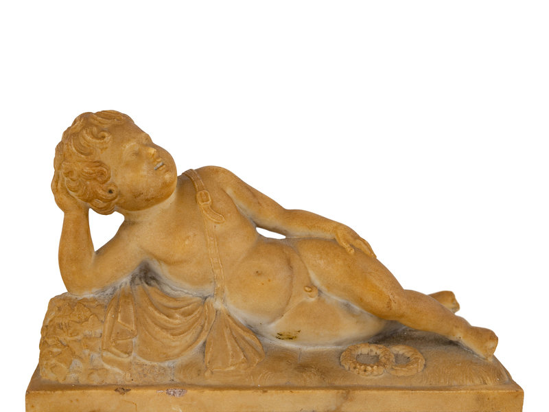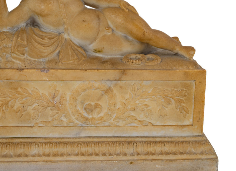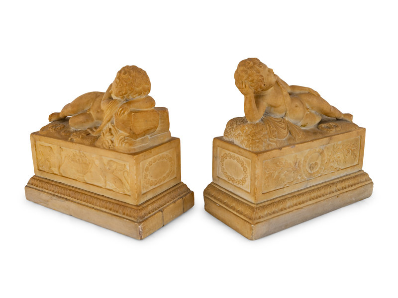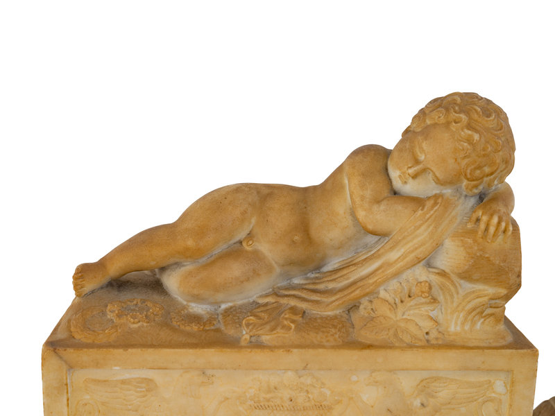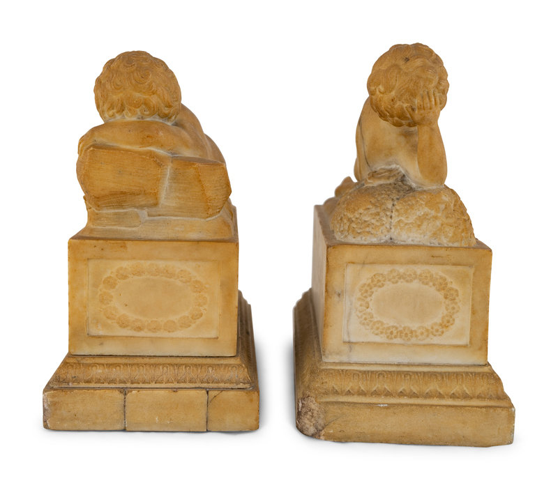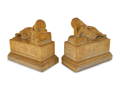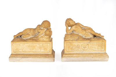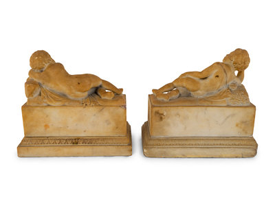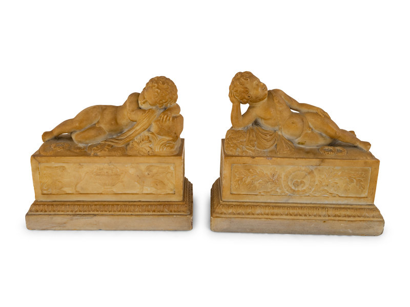 A Pair of Marble Models of Sleeping Cherubs on Plinths