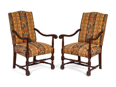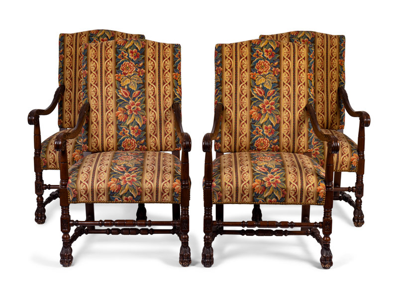 Four Spanish Colonial Style Carved Mahogany Open Armchairs