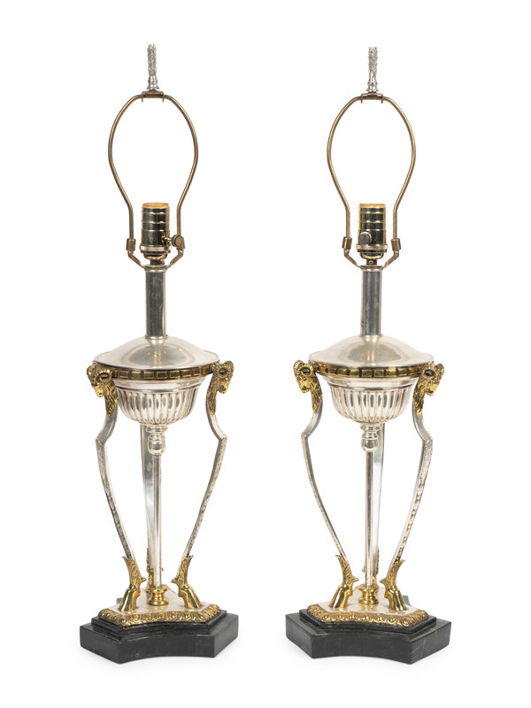 A Pair of Neoclassical Style Silvered and Gilt Metal Lamps