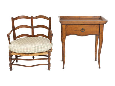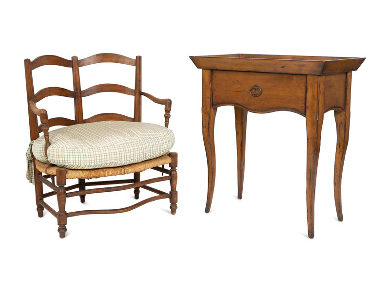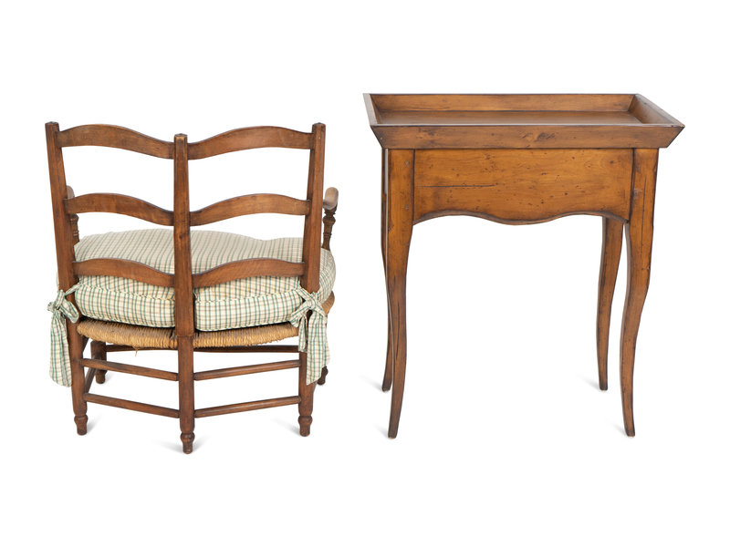 A French Provincial Tray Top Side Table and a Rush-seat Bench