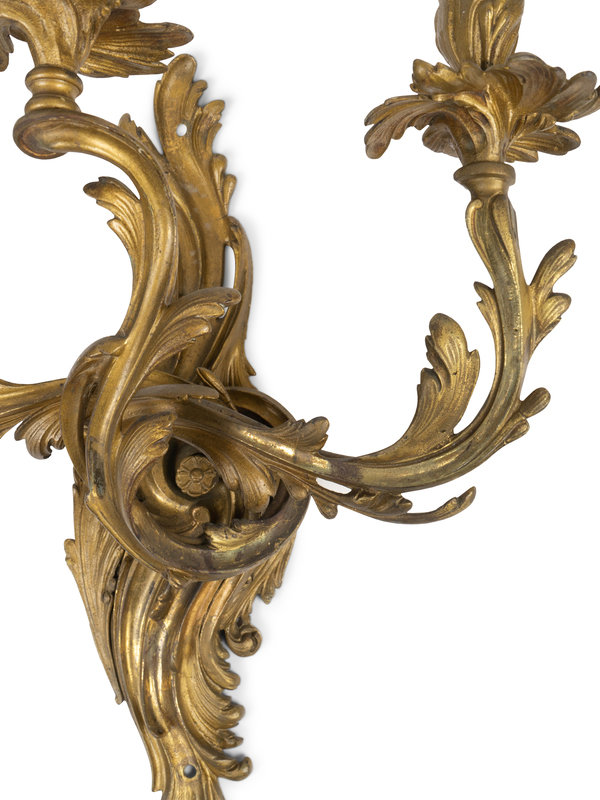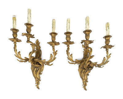 A Pair of Louis XV Style Gilt Bronze Three-Light Wall Sconces