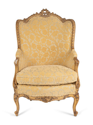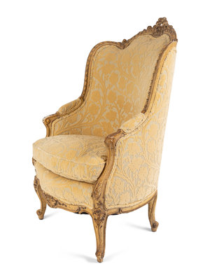 A Louis XV Style Carved and Painted Bergere A Oreille