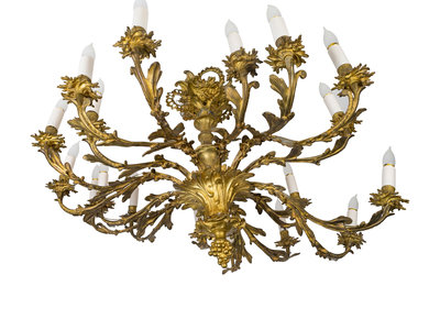 A Louis XV Style Gilt Bronze 18-Light Chandelier