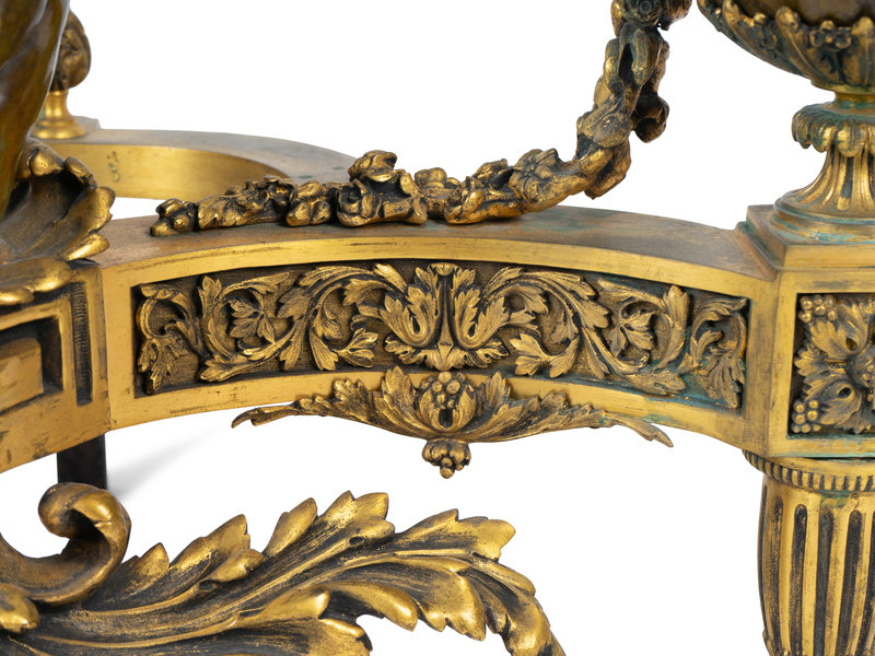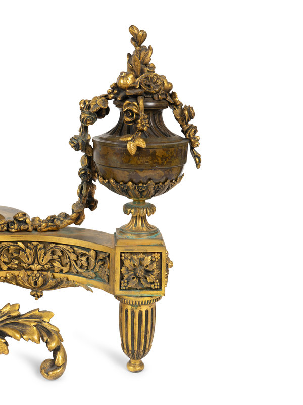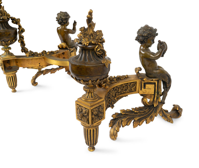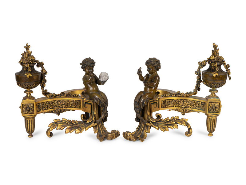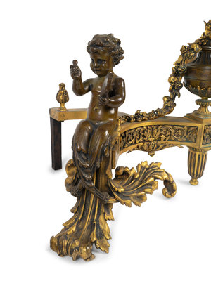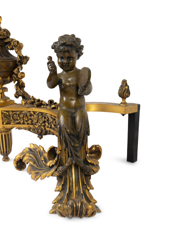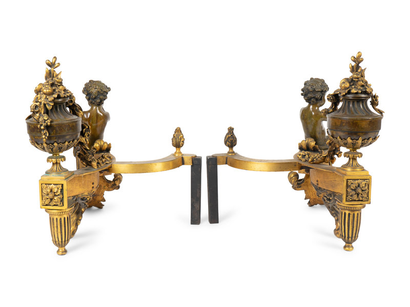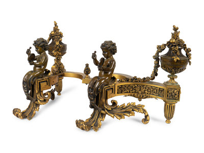 A Pair of Louis XV Style Bronze and Gilt Bronze Chenets