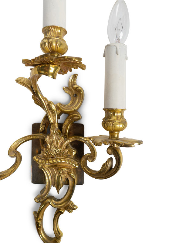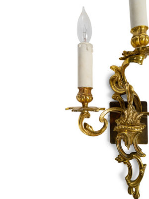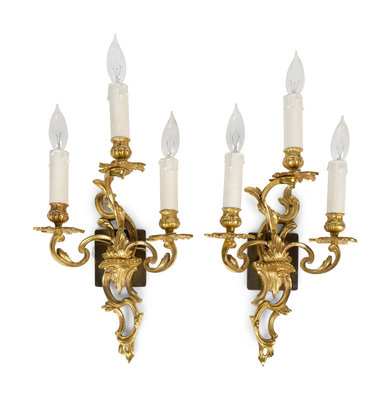 A Pair of Louis XV Style Gilt Bronze Three-Light Wall Sconces