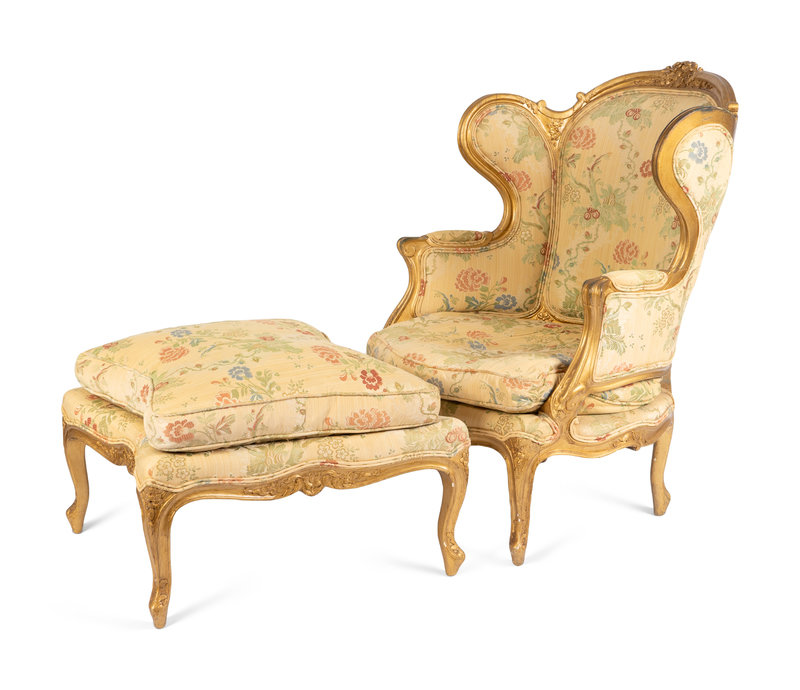 A Louis XV Style Carved Giltwood Two-Part Duchesse Brisee