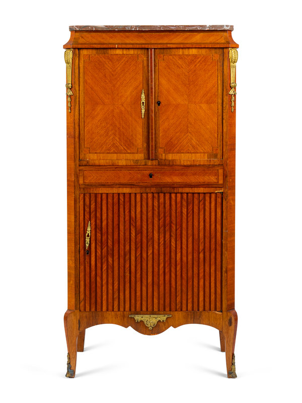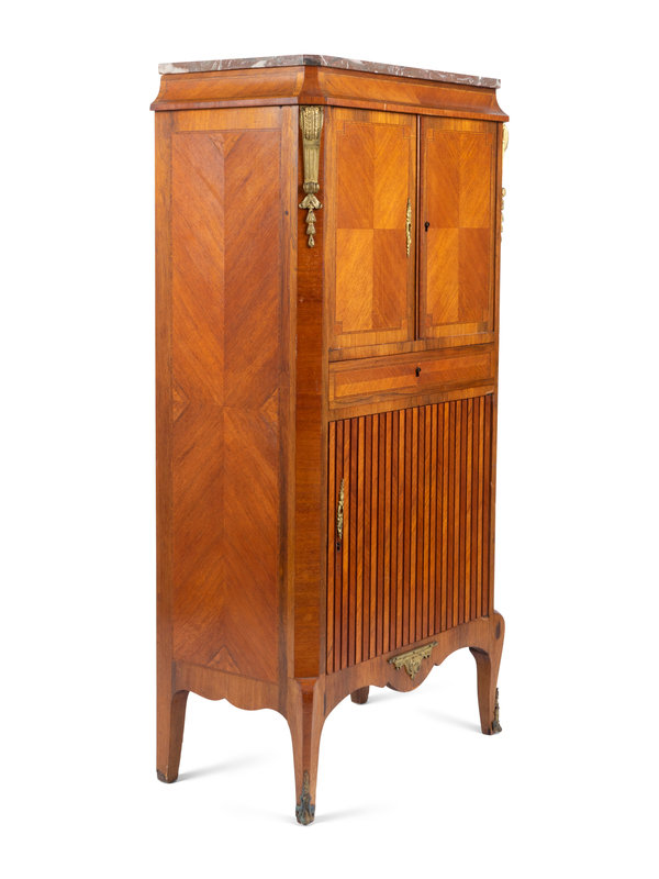 A Louis XV/XVI Transitional Gilt Bronze Mounted Parquetry Secretaire