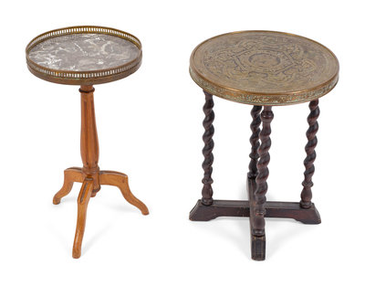 A Louis XV/XVI Transistional Style Gilt Metal Mounted Marble Top Gueridon