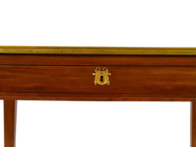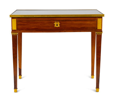 A Louis XVI Style Bronze Mounted Marble Top Writing Table