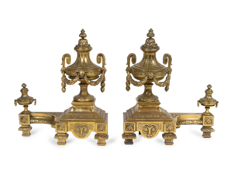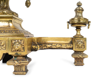 A Pair of Louis XVI Style Gilt Bronze Urn-Form Chenets