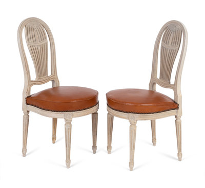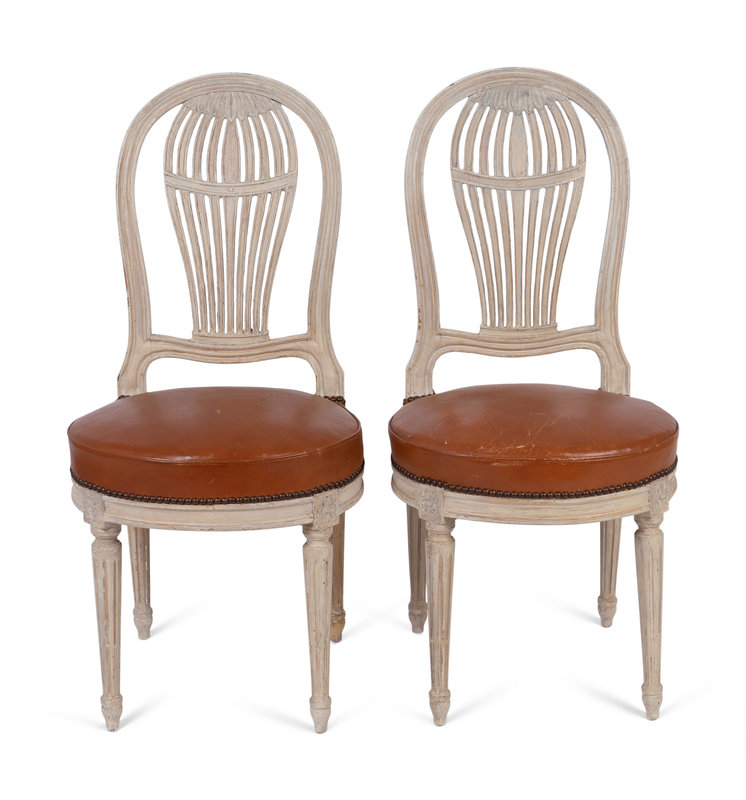 A Pair of Louis XVI Style Painted Montgolfier Side Chairs