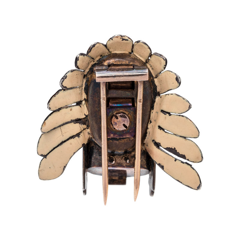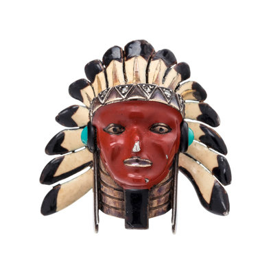 CARTIER, VINTAGE, ENAMEL, TURQUOISE AND DIAMOND NATIVE AMERICAN 'SIOUX' BROOCH