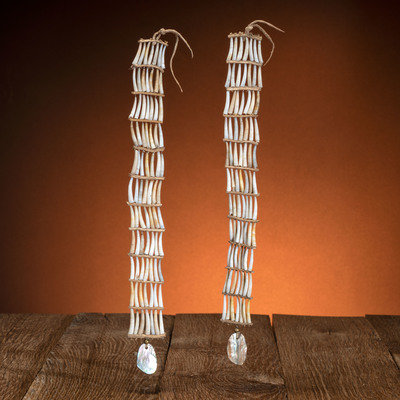 Northern Plains Dentalium Shell Earrings, with Abalone Drop