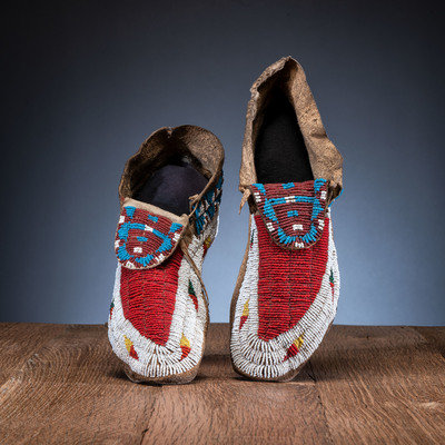 Sioux Beaded Buffalo Hide Moccasins